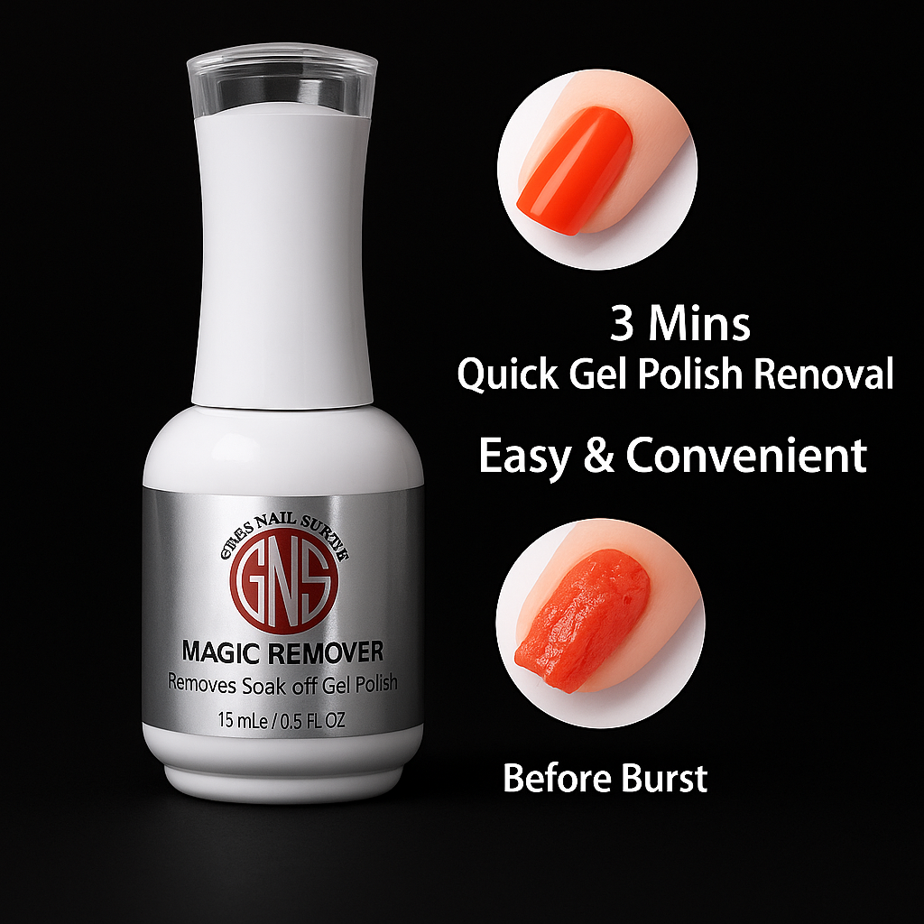 Products like the GNS Gel Magic Remover 15ml from Gina's Nails Supplies are formulated for gel polish. They work faster than pure acetone and include conditioning agents.