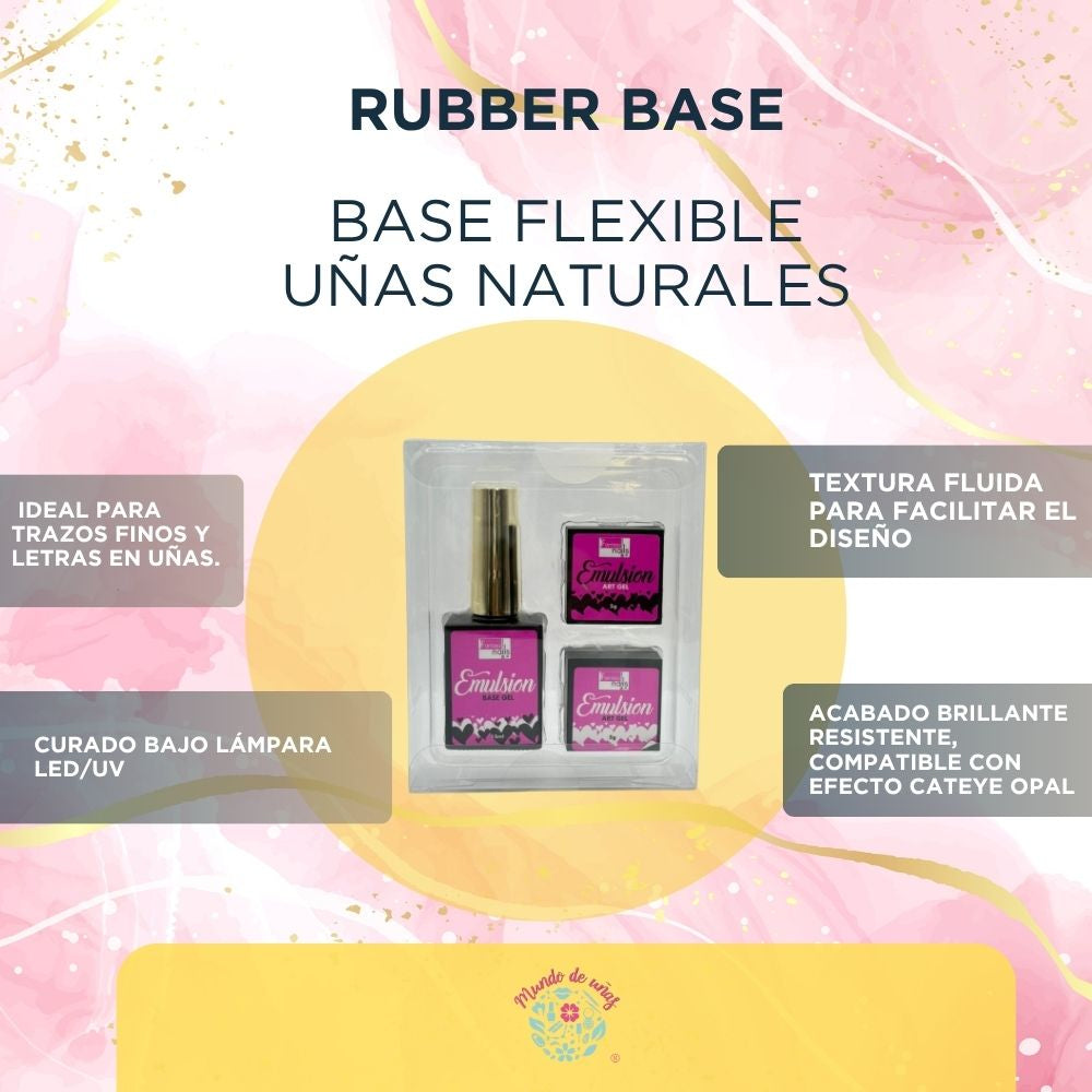 Rubber es un gel que se aplica a las uñas como base reconstructora. Su textura engomada le otorga un carácter flexible, lo que permite que la uña pueda "doblarse" de una forma resistente (sin romperse) y, además, mejora la adherencia del esmalte (lo que implica una mayor duración de tu manicura).